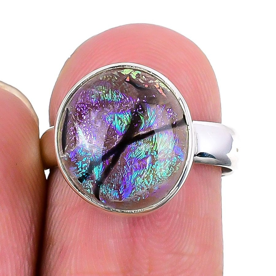 Mexican Dico Glass Gemstone 925 Silver Sister Statement Trendy New Ring Size 6.5