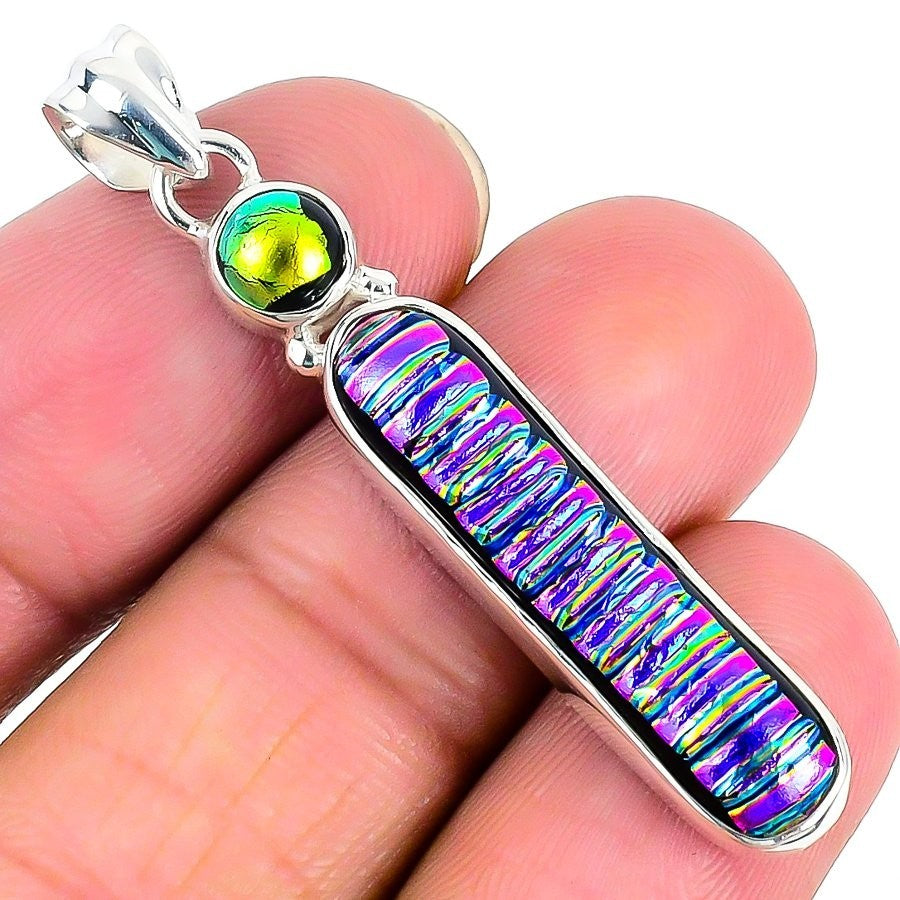 Mexican Dico Glass Gemstone 925�Solid�Silver Handmade Daughter Bezel New Pendant