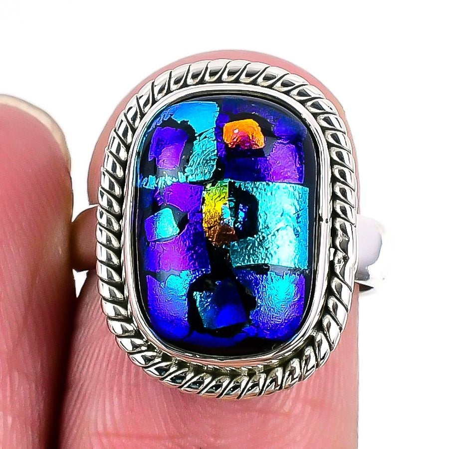 Mexican Dico Glass Gemstone 925 Solid Silver Statement New Ring Jewelry US 6.5