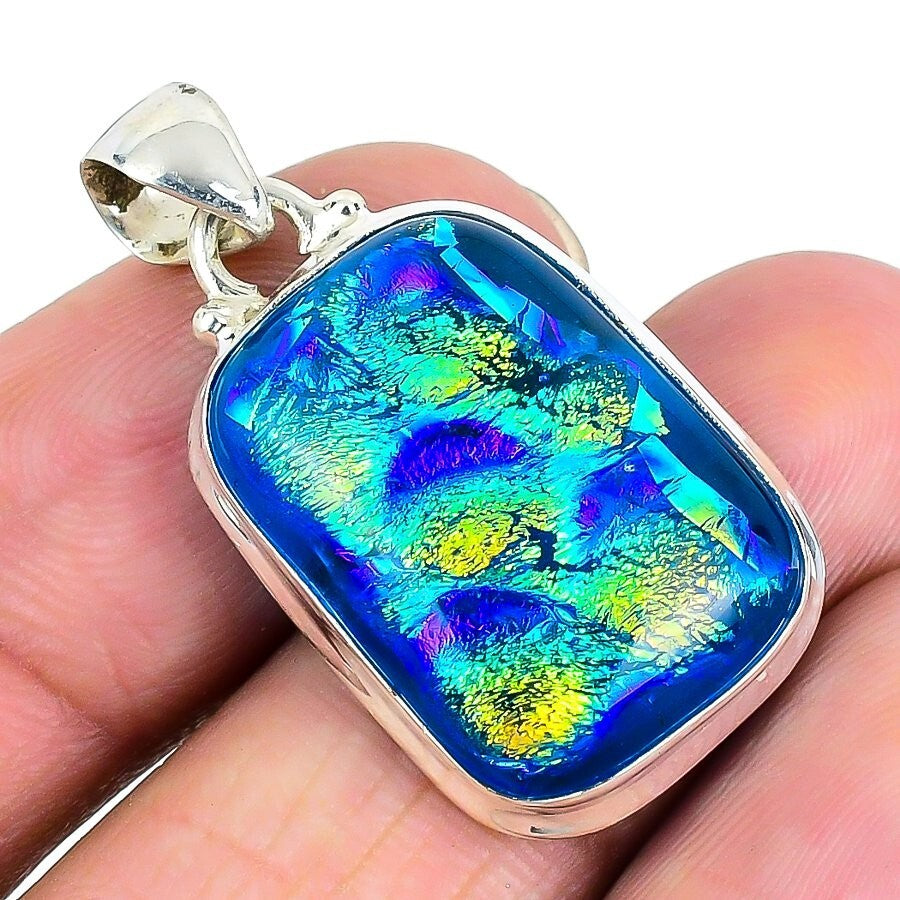 Mexican Dico Glass Gemstone 925 Sterling Silver Mother Birthday Artisan Pendant