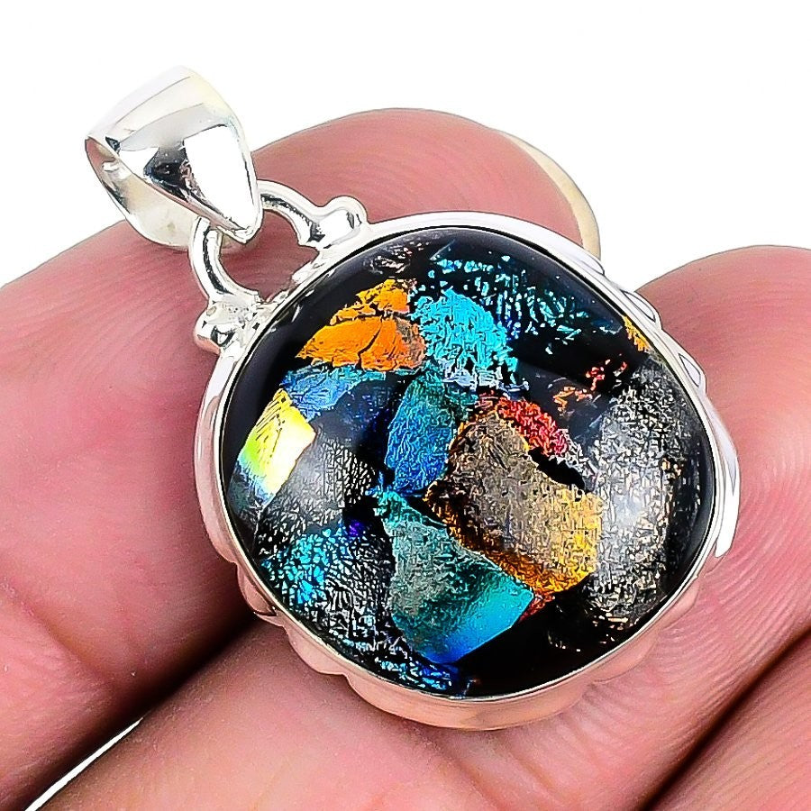 Mexican Dico Glass Gemstone Artisan Birthday Daughter Gift Pendant 925 Silver
