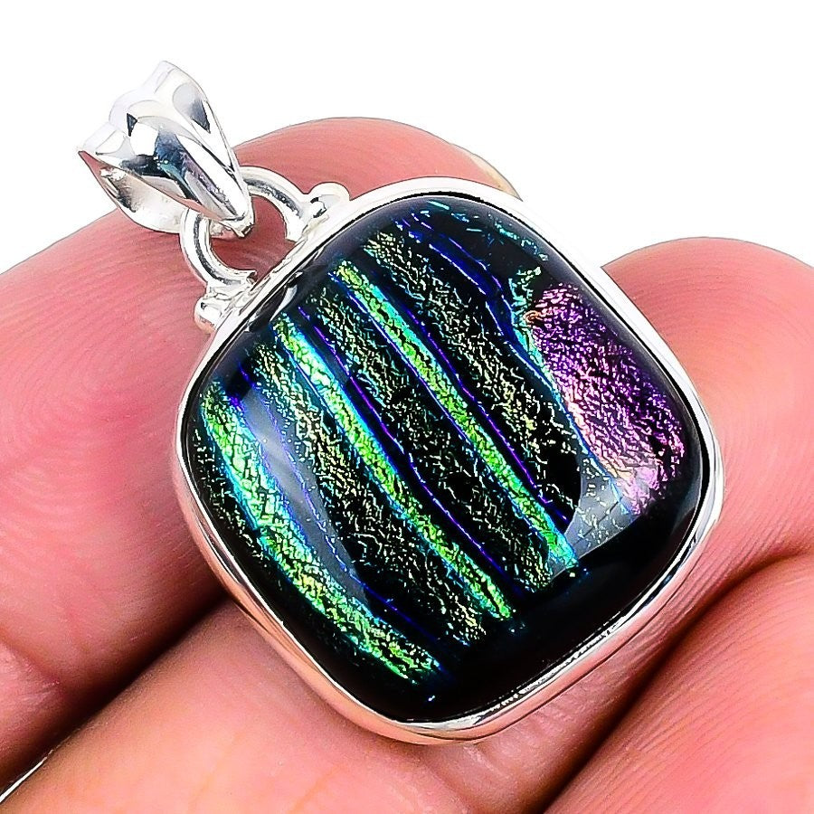 Elegant Mexican Dico Glass Gemstone Elegant Bezel Pendant in