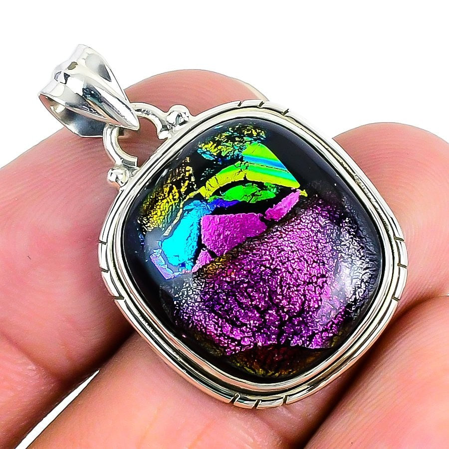 Mexican Dico Glass Gemstone Solid Silver Bezel Ethnic Mother Sisters Day Pendant