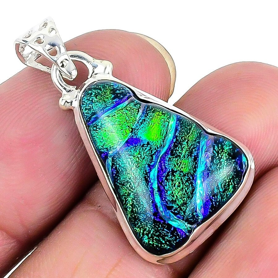 Mexican Dico Glass Gemstone Solid Silver Memorial Day Art Deco Pendant Jewelry