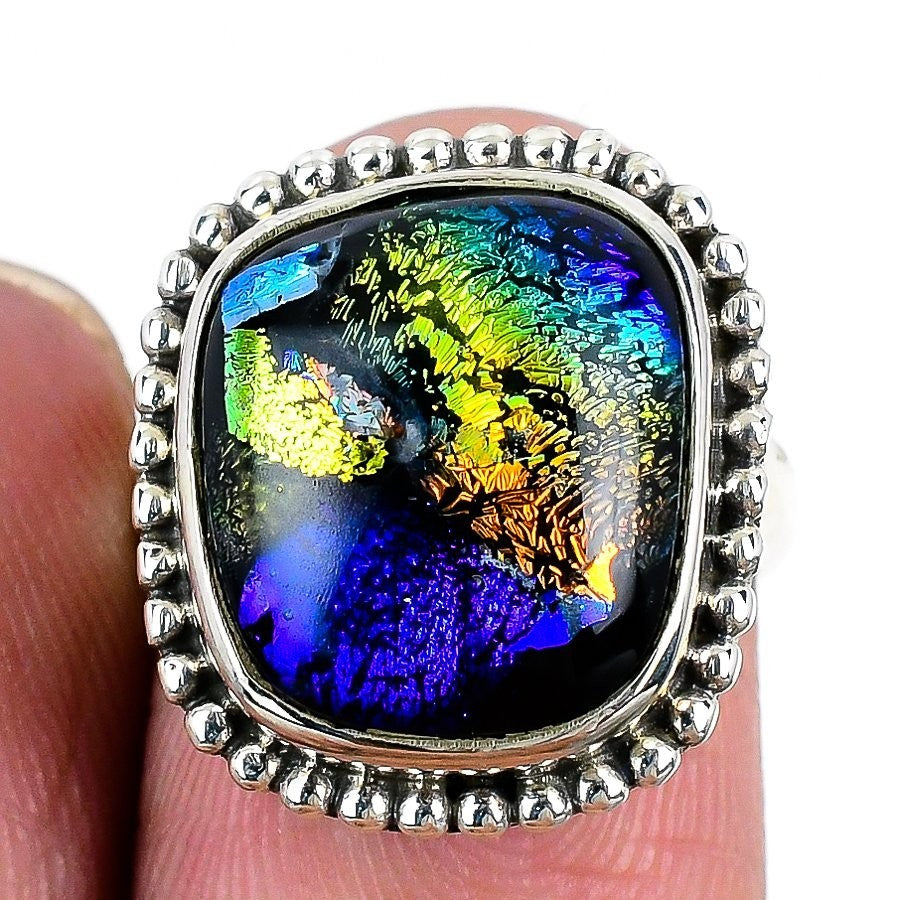 Mexican Dico Glass Gemstone Solid Sterling Silver Statement Handmade Ring US 6