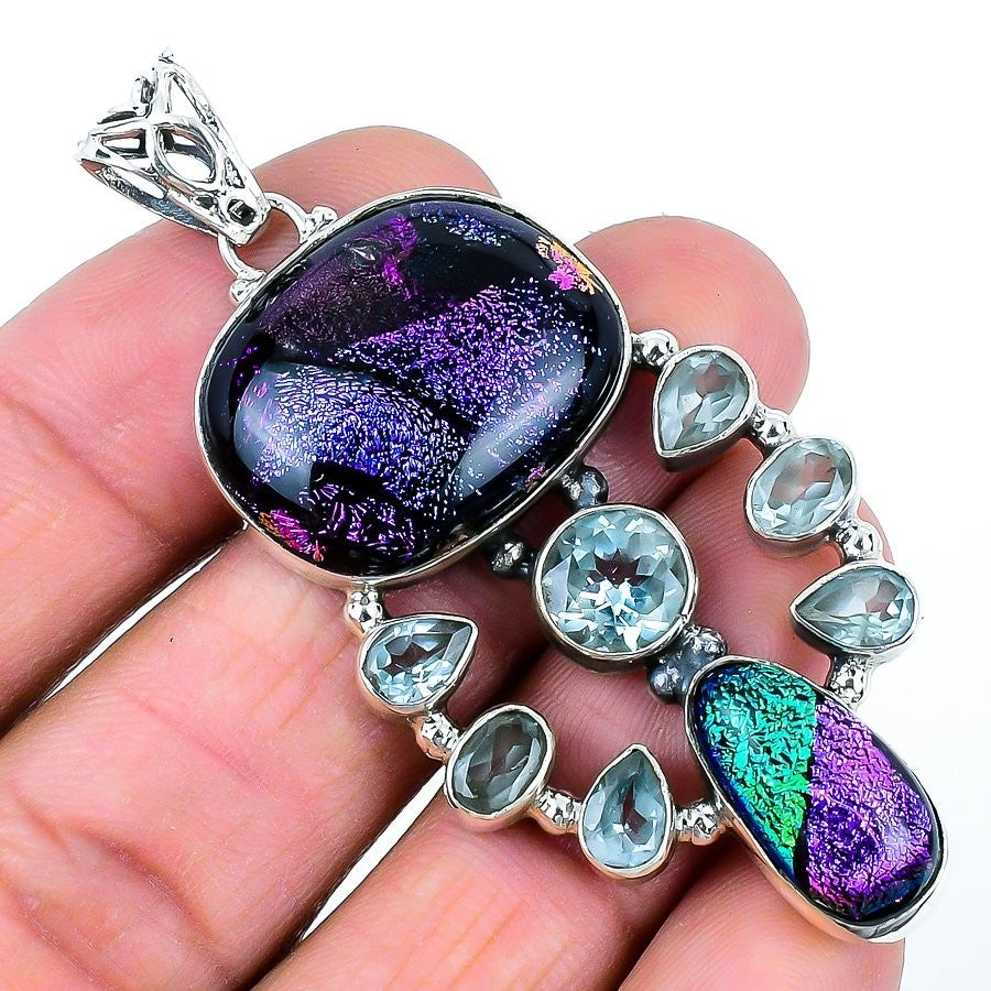 Mexican Dico Glass Gemstone Sterling Silver Best Friend Gift Wife Ethnic Pendant