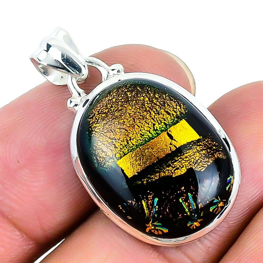 Elegant Mexican Dico Glass Gemstone Sterling Silver Bezel in
