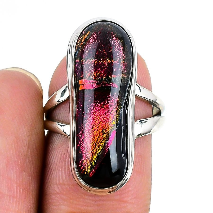Mexican Dico Glass Gemstone Wedding Unique Statement Ring Size 6.5 Solid Silver