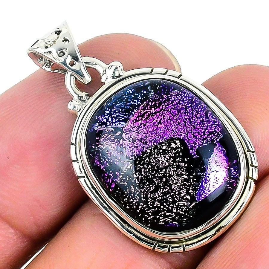 Mexican Dico Glass Stone 925�Solid�Silver Anniversary Bezel Wife Pendant Jewelry