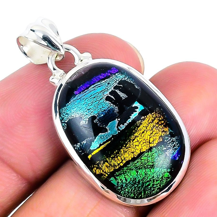 Mexican Dico Glass Stone 925 Solid Silver Wife Bezel Anniversary Pendant Jewelry