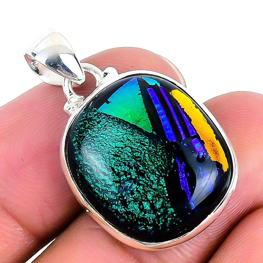 Mexican Dico Glass Stone 925 Sterling Silver Birthday Mother Bezel Boho Pendant