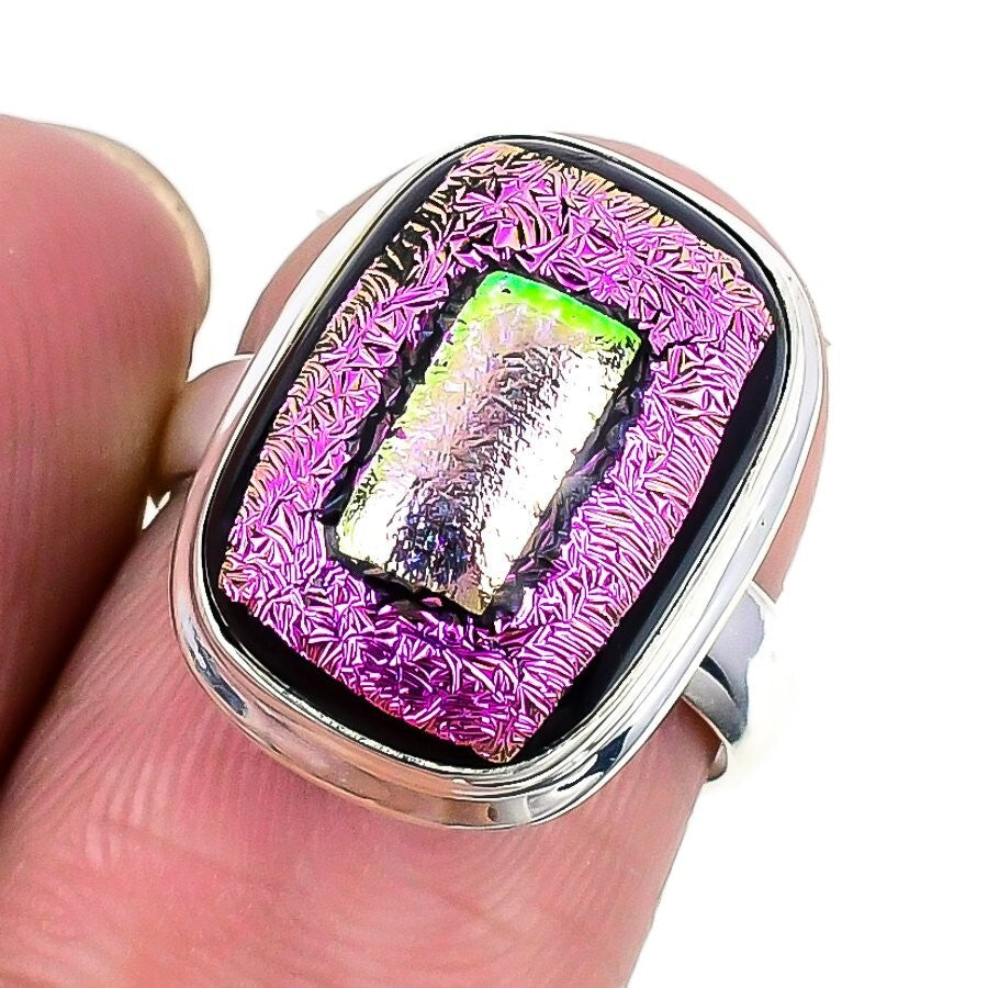 Elegant Mexican Dico Glass Stone 925 Sterling Silver in 925