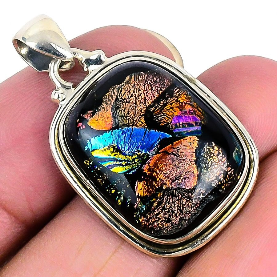 Mexican Dico Glass Stone Birthday Wedding Pendant Jewelry Solid Sterling Silver