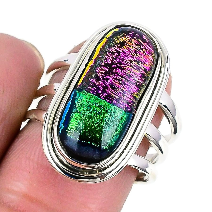 Mexican Dico Glass Stone Cluster Daughter Gift Ring Size 8 925 Sterling Silver