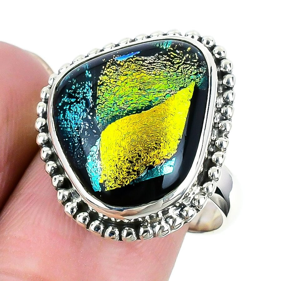Mexican Dico Glass Stone Cluster Engagement Art Deco Ring Size 9 Solid Silver