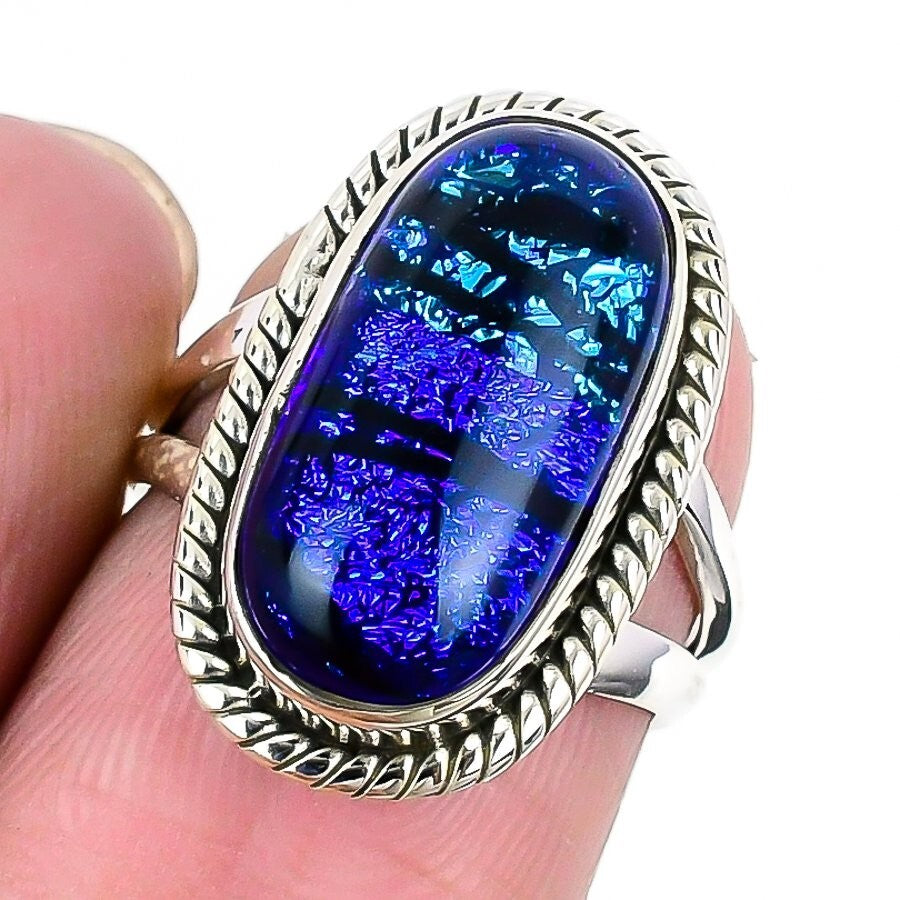 Mexican Dico Glass Stone Cluster Trendy Mother Ring Size 6 Solid Sterling Silver