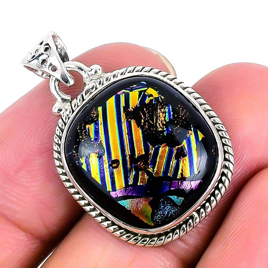 Mexican Dico Glass Stone Sister Engagement Pendant Jewelry Solid Sterling Silver