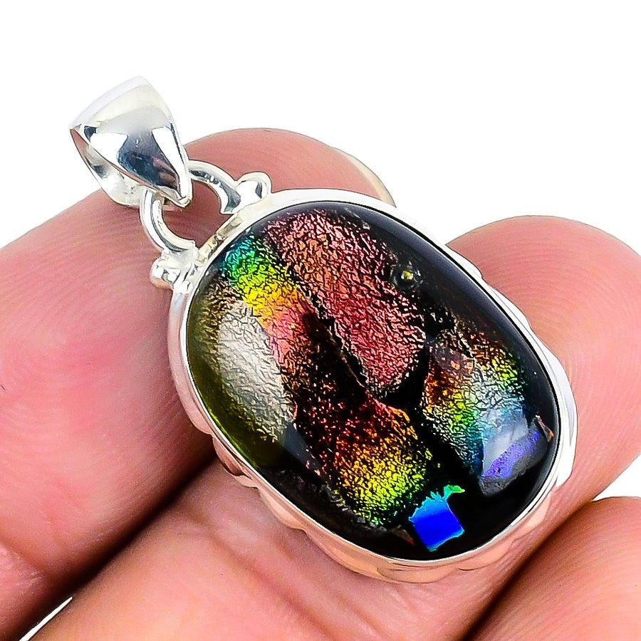 Mexican Dico Glass Stone Solid Sterling Silver Wife Sisters Gift Pendant Jewelry