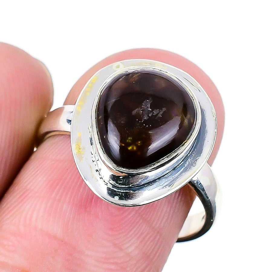 Mexican Fire Opal Stone Sterling Silver Boho Statement Wife Ring Jewelry US 8