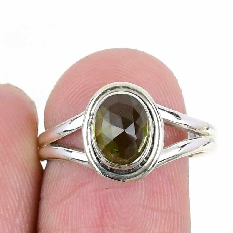 Elegant moldavite Faceted Gemstone 925 Sterling Silver Wife