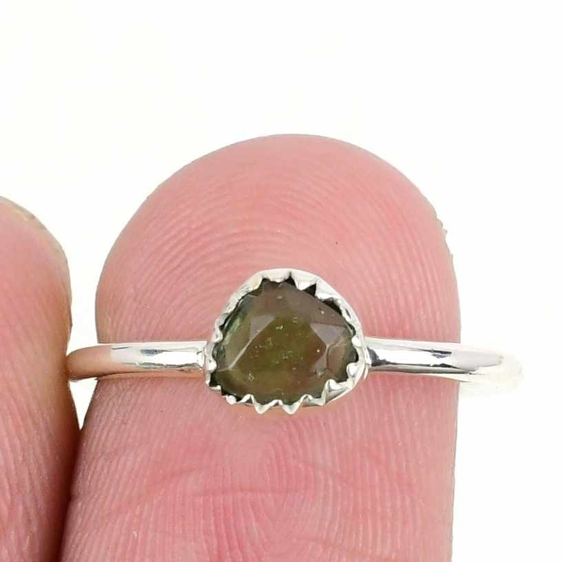 Elegant Moldavite Faceted Gemstone Sterling Silver Artisan H