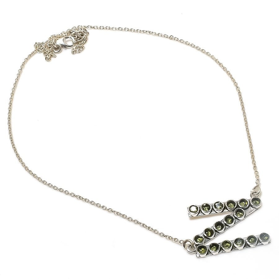 Moldavite faceted Stone 925 Sterling Silver Chain Anniversary Necklace Jewelry