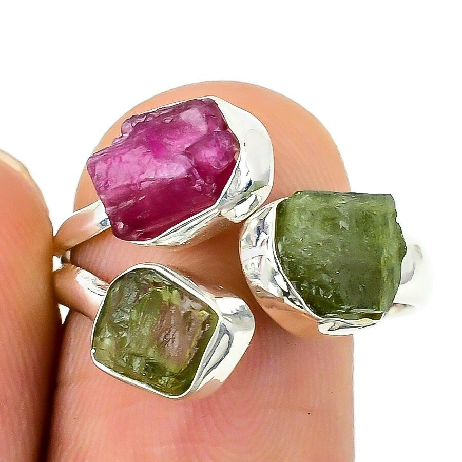 Moldavite Gemstone 925 Solid Silver Handcrafted Statement Boho New Ring Jewelry
