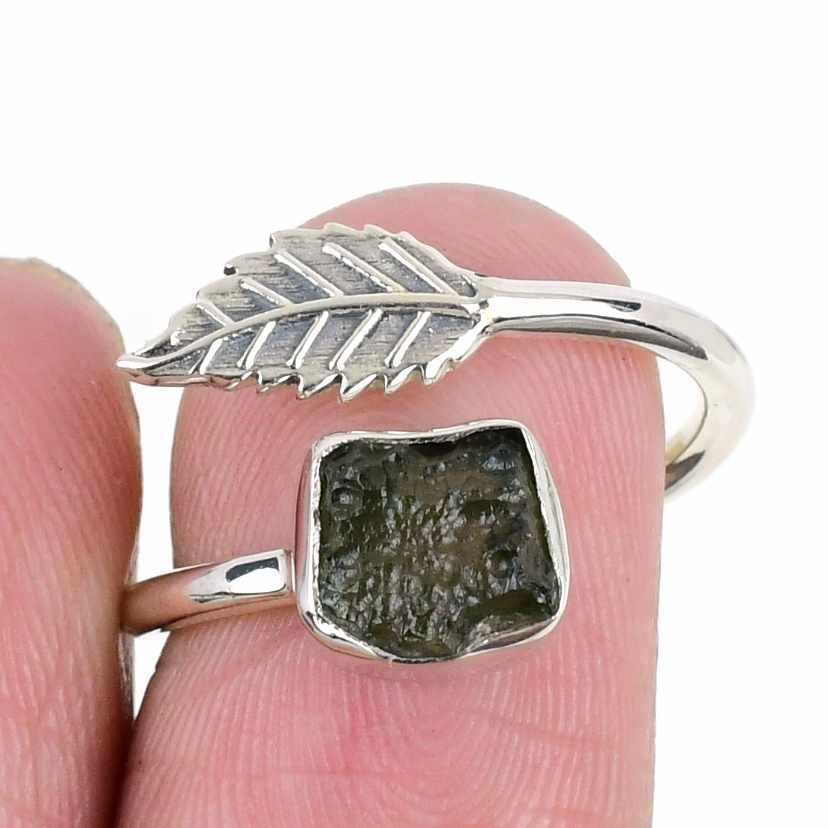 Moldavite Gemstone Birthday Cluster Daughter Ring Jewelry Size 8 Solid Silver