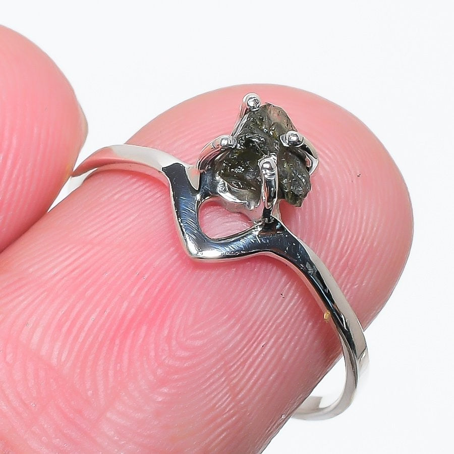 Moldavite Gemstone Wife Statement Engagement Ring Jewelry 925 Solid Silver US 8