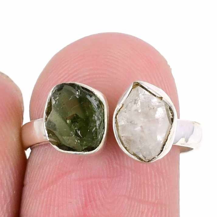 Moldavite & herkimer Gemstone 925 Silver Cluster Daughters Day New Ring Size 7.5