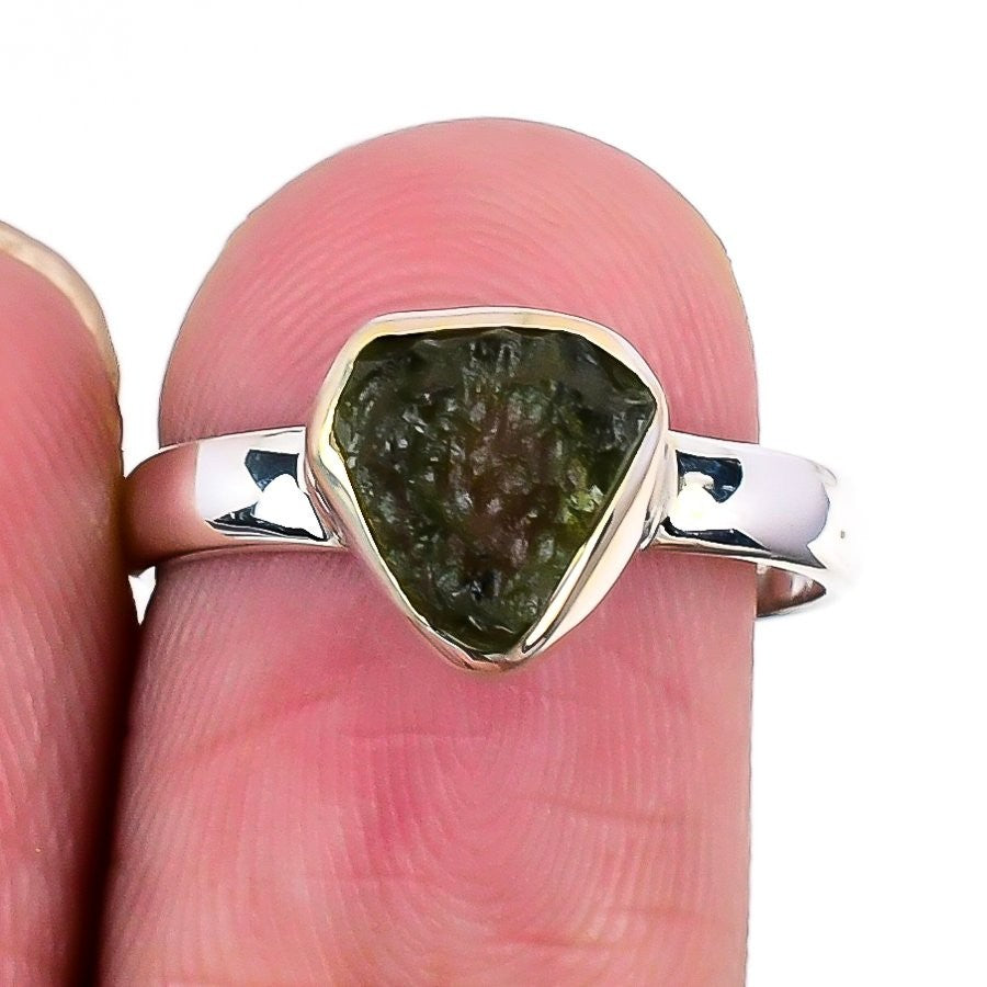 Moldavite Quartz Gemstone Statement Bezel Ring Jewelry Size 8 925 Solid Silver