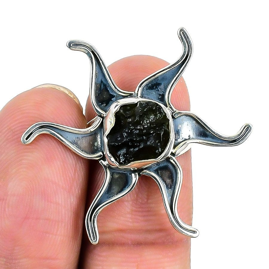 Elegant Moldavite Quartz Gemstone Sterling Silver Statement