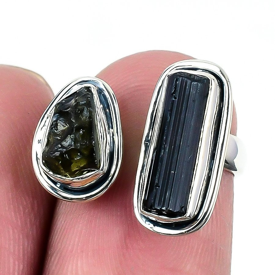 Moldavite Quartz Stone 925 Silver Statement Daughters Day Unique Ring Jewelry