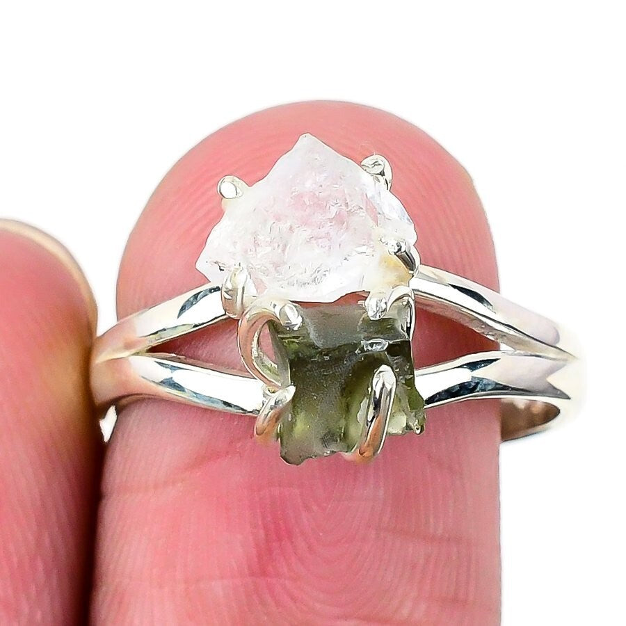 Moldavite Stone 925 Silver Statement Anniversary Third Eye Chakra Daughter Ring