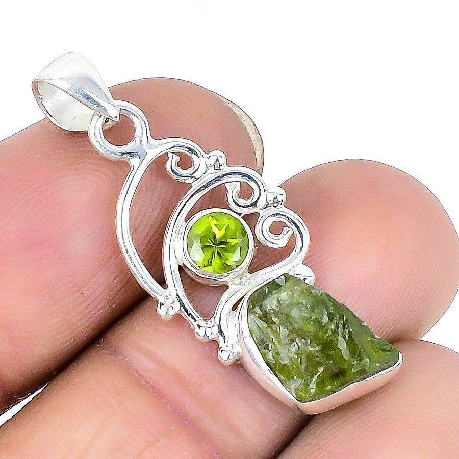 Moldavite Stone Sister Handmade Engagement Art Deco Boho Pendant Sterling Silver