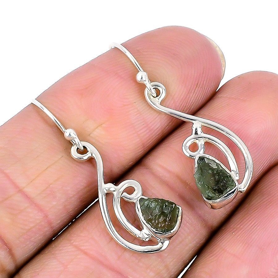 Moldavite Stone Solid Silver Anniversary Dangle Hook Birthday Earrings Jewelry