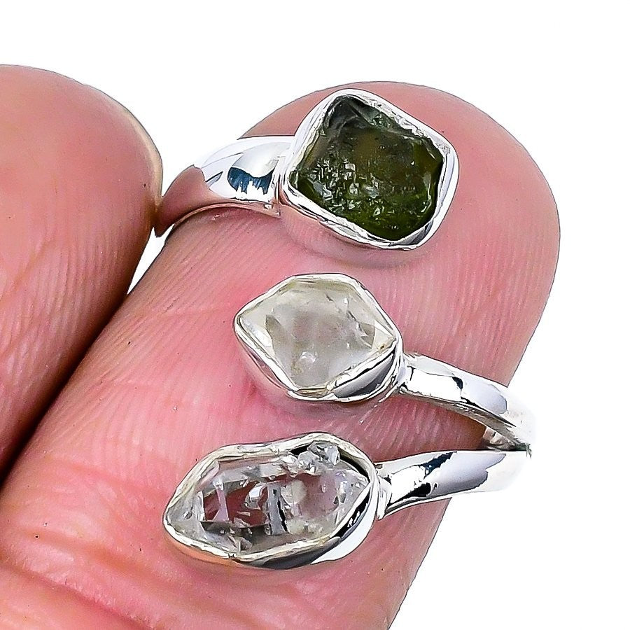Moldavite Stone Solid Sterling Silver Engagement Statement Handcrafted Ring US 8
