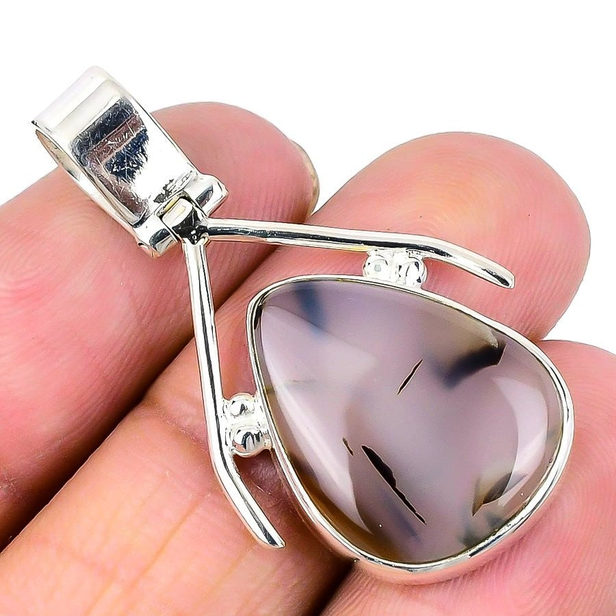 Montana Agate Gemstone 925 Sterling Silver Friendship Day Wife Art Deco Pendant