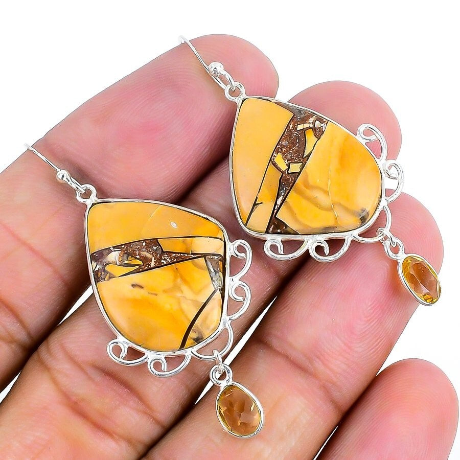 Mookaite Gemstone Boho Ethnic Drop Dangle Hook Earrings Jewelry 925 Solid Silver