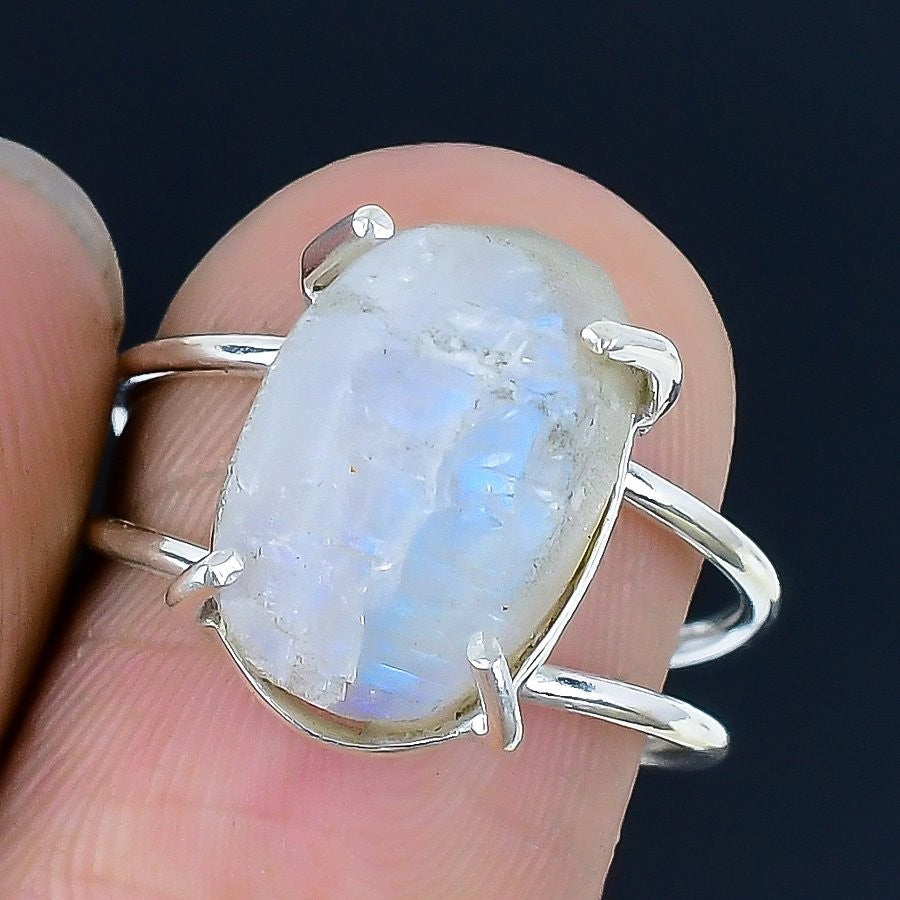 Moonstone Druzy Stone 925 Silver Mother Statement Artisan Birthday Ring US 7.5