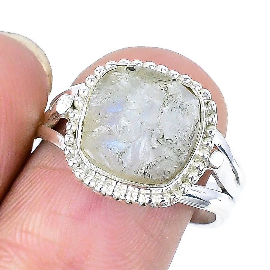 Moonstone Druzy Stone Solid Sterling Silver Elegant Wedding Statement Ring US 9