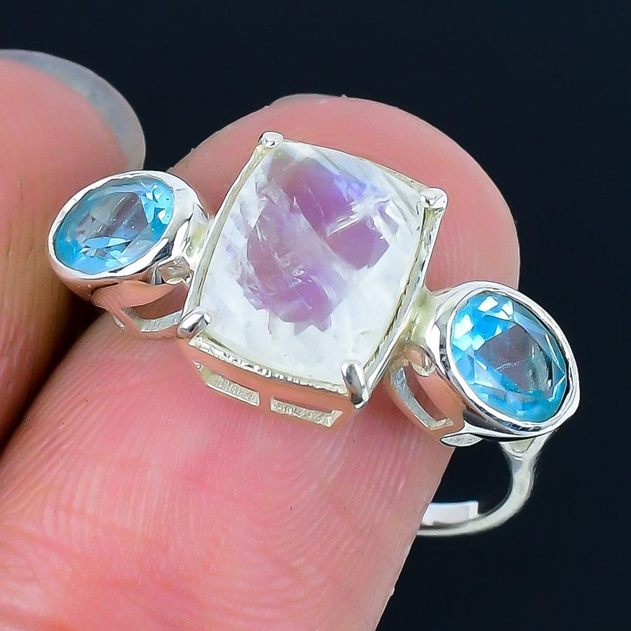 Moonstone Faceted Stone 925 Sterling Silver Statement Best Daughters Gift Ring