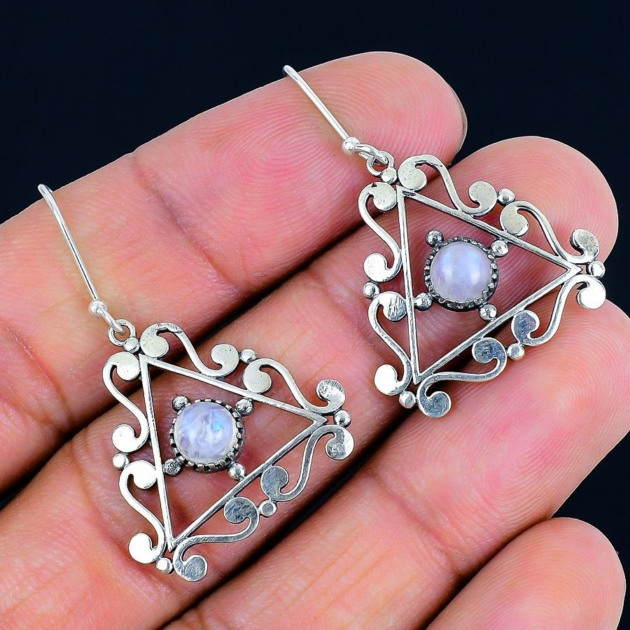 Moonstone Gemstone 925 Silver Engagement Dangle Drop Bezel Birthday New Earrings