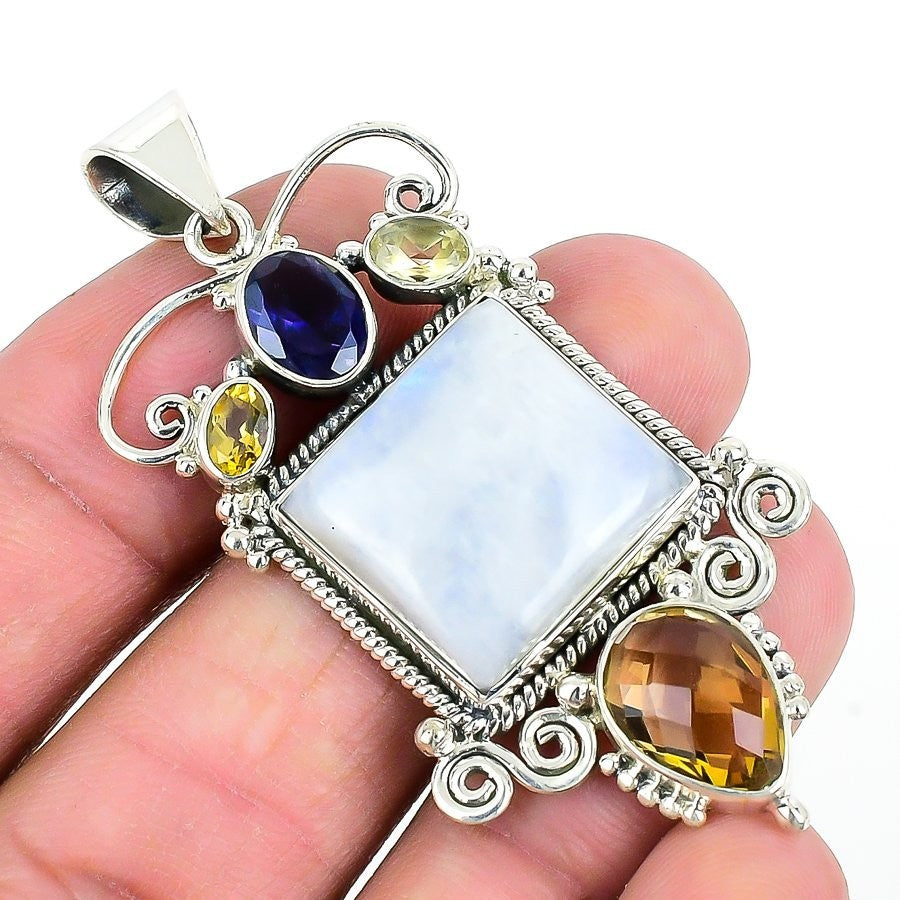 Moonstone Gemstone 925 Solid Silver New Anniversary Bezel Boho Sister Pendant