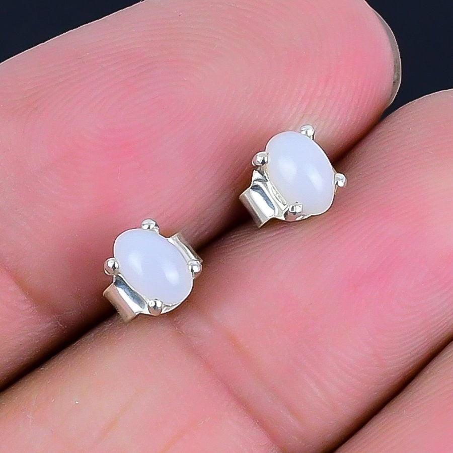 Moonstone Gemstone Daughter June Stud Wedding Earrings Jewelry 925 Solid Silver