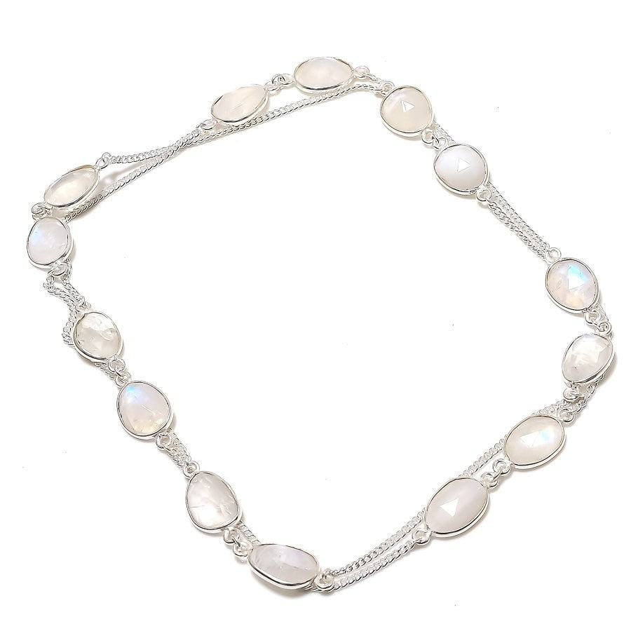 Moonstone Gemstone Solid Sterling Silver Bezel Boho Chain Daughters Day Necklace