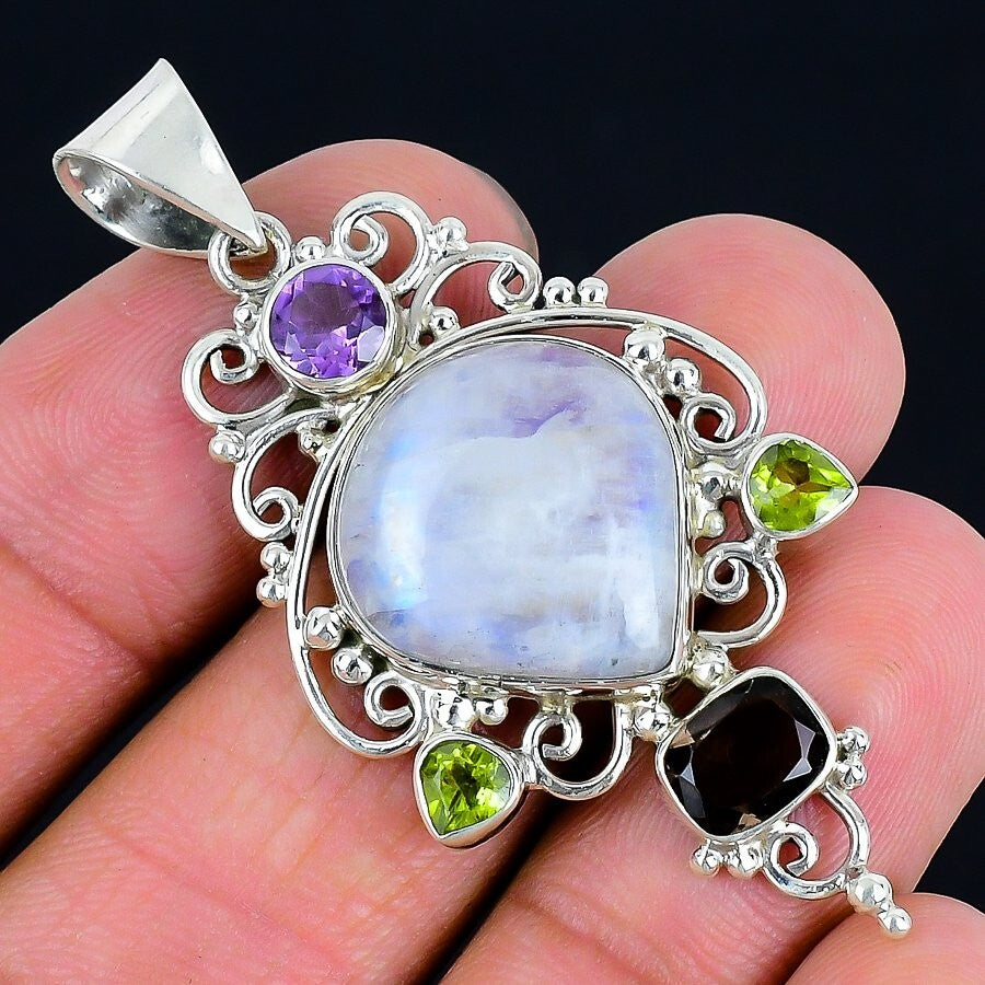 Moonstone Gemstone Solid Sterling Silver Bezel Trendy Unique Boho New Pendant