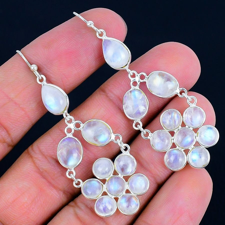 Moonstone Gemstone Solid Sterling Silver Mother Bezel Dangling Earrings Jewelry