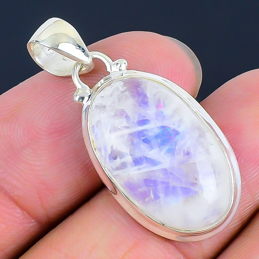 Moonstone Gemstone Sterling Silver Daughters Day Bezel Birthday Pendant Jewelry
