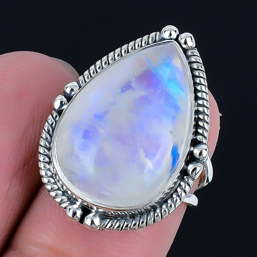 Moonstone Gemstone Sterling Silver June Birth Ethnic Cluster Artisan Ring Size 6